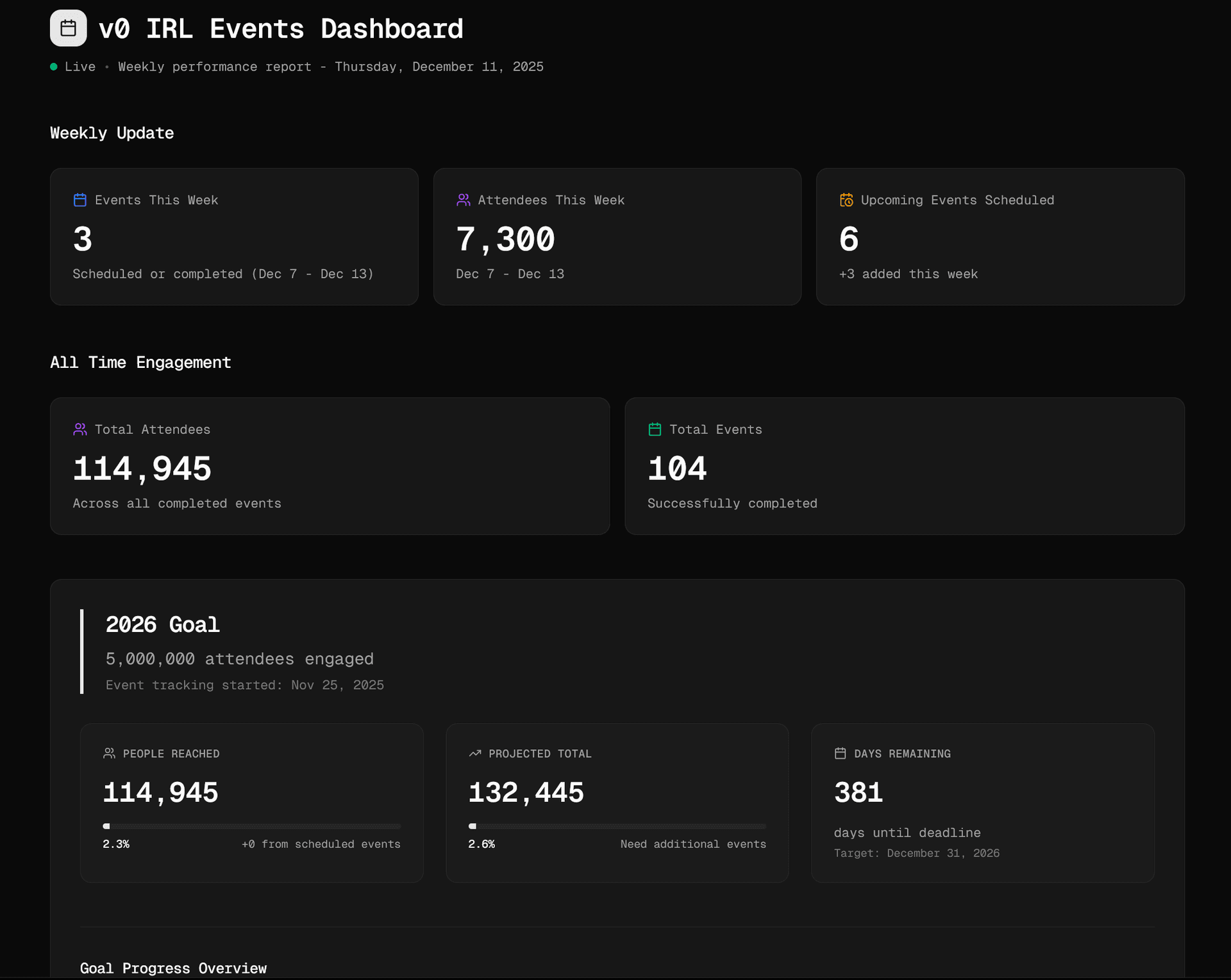 I want to build a tracking dashboard for our v0 IRLs (events) using our Notion events database.