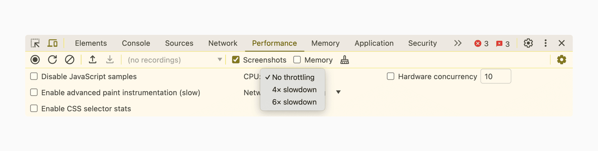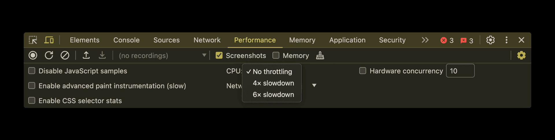 Pairing these two tools with CPU throttling in the Chrome DevTools performance panel makes it quite easy to get results comparable to users on slower devices. One bit of caution: The CPU throttling sometimes yields extreme delays on the very first interaction. It’s safe to ignore this and just click again.