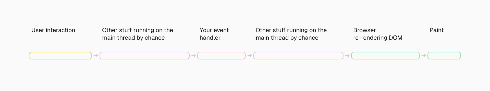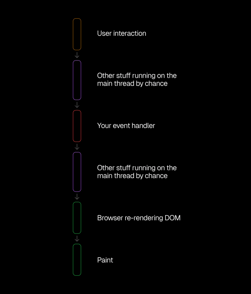 The time from interaction to next paint can be structured like this: