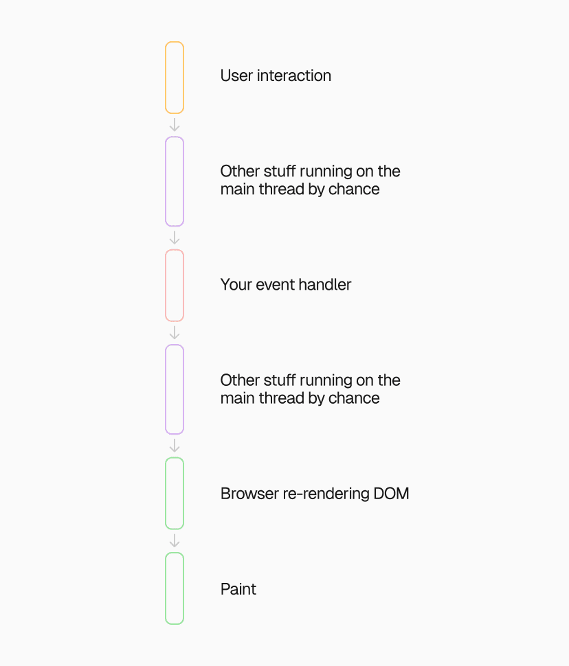 It is this combination of DOM change and render-time that will most immediately impact the INP score of the user interaction. We have a dedicated section for how to optimize it below.