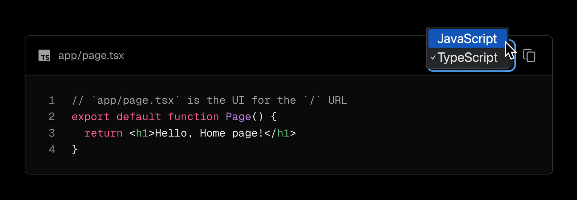 One difficult case from nextjs.org was the programming language picker which is used in the documentation section: