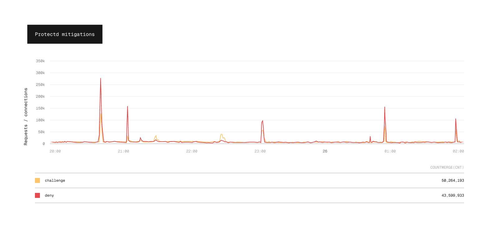 Now, we’re introducing Protectd, our next-generation real-time security engine. Running across all deployments, Protectd reduces mitigation times for novel DoS attacks by over tenfold, delivering faster, more adaptive protection against emerging threats.