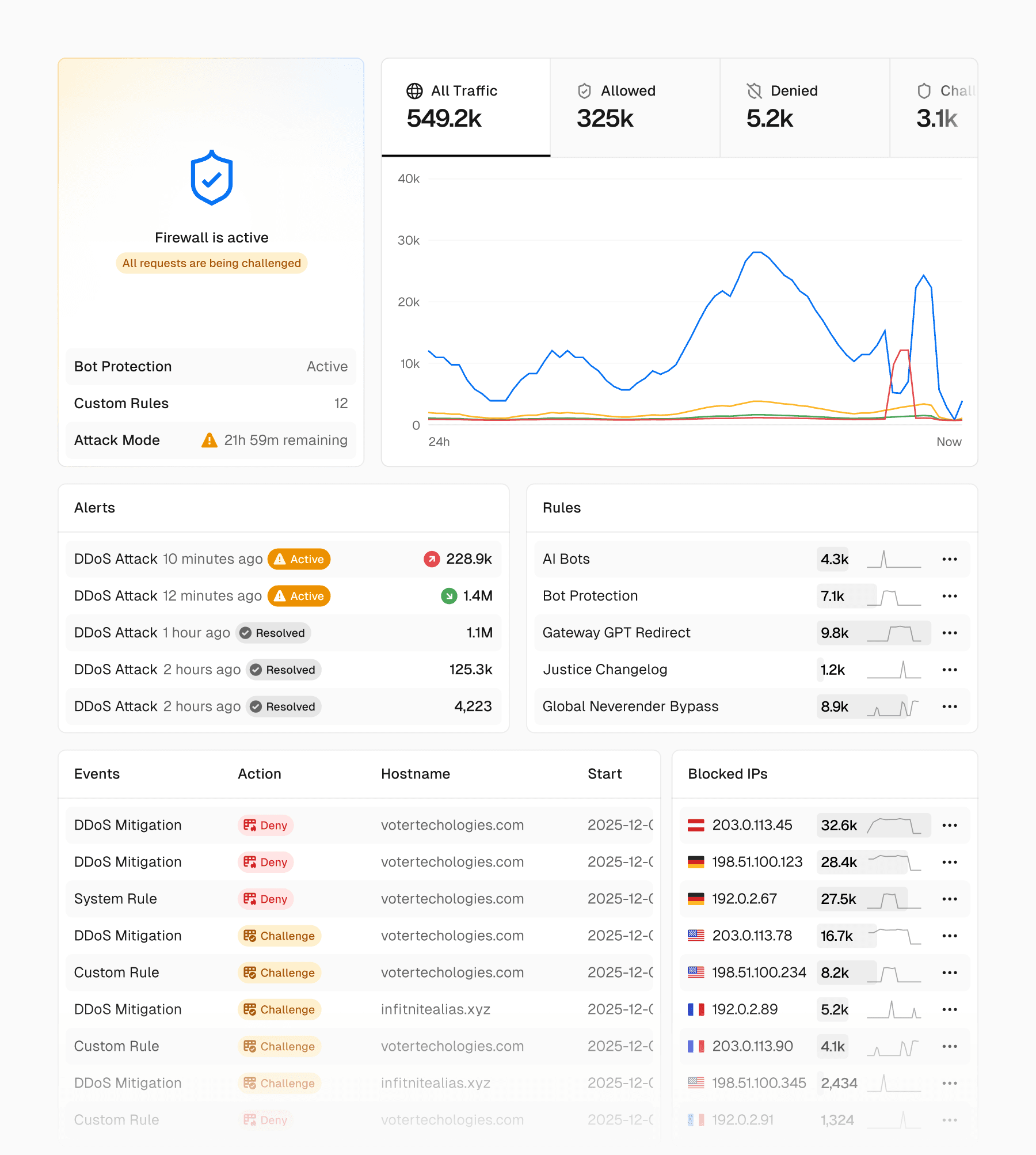 The new Firewall UI is designed for everyone using Vercel. It surfaces clear, actionable information, simplifies navigation, and helps teams resolve issues quickly when it matters most.