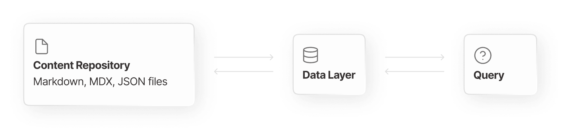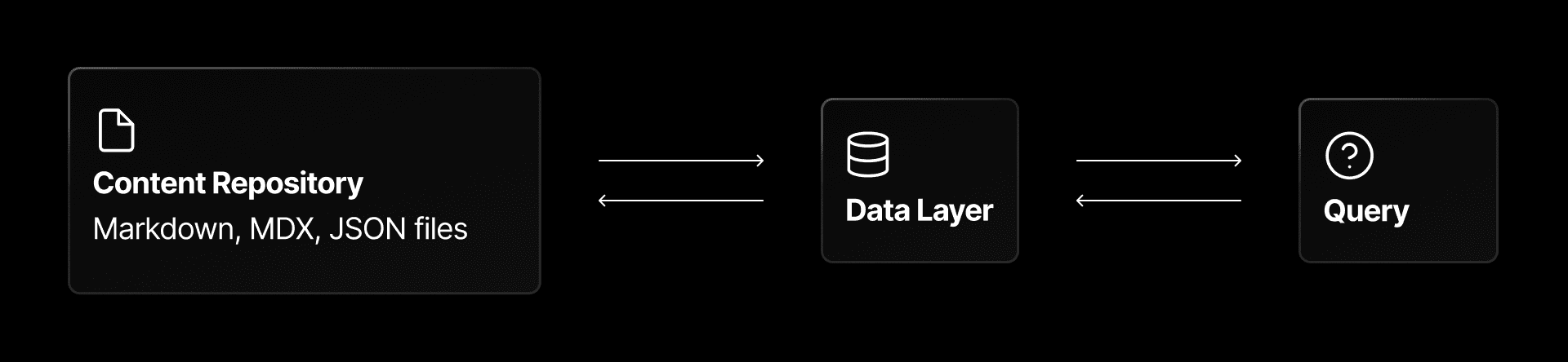 Tina stores content in Markdown, MDX, JSON, files and syncs with your Git repository.  Tina spins up a Data Layer so you can fetch your Markdown content just like you would with any other headless CMS. You can self-host Tina’s Data Layer using any KV store, such as Vercel KV