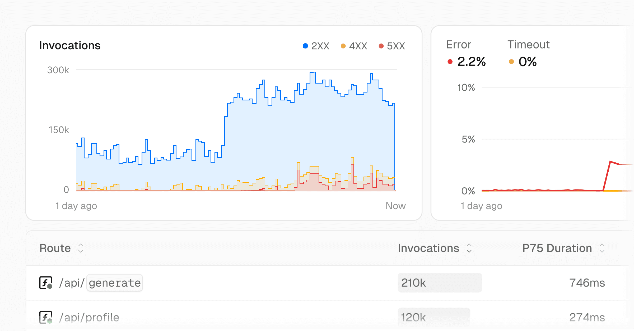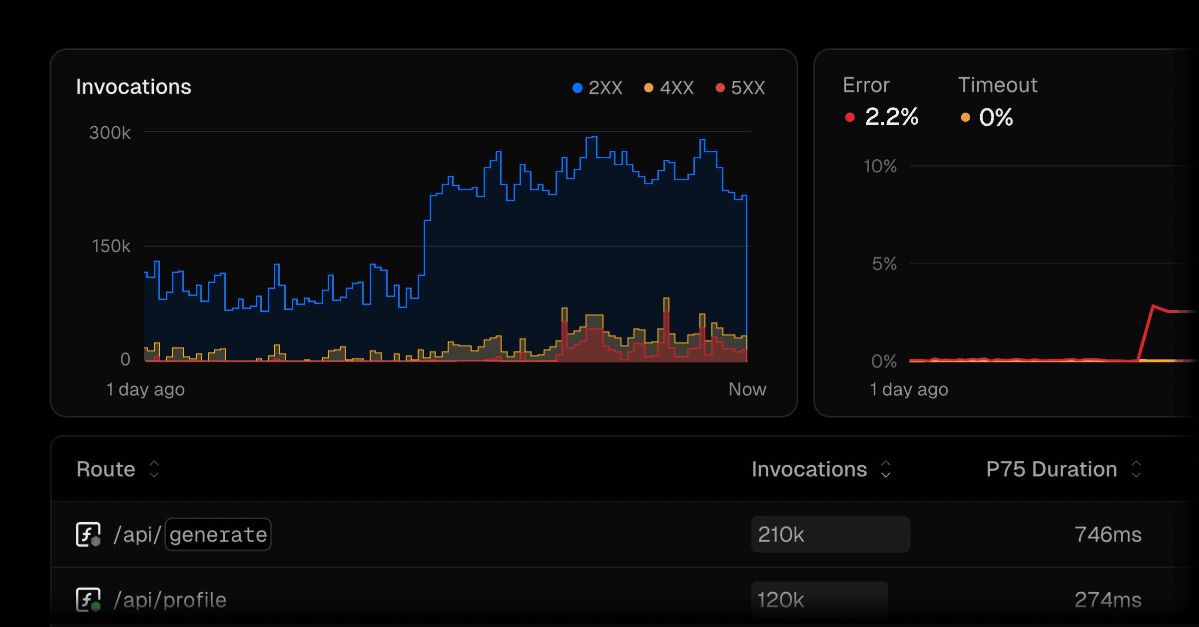 Vercel creates one or more of these events each time a request is made to your site. Depending on your application and configuration a single request to Vercel might be: