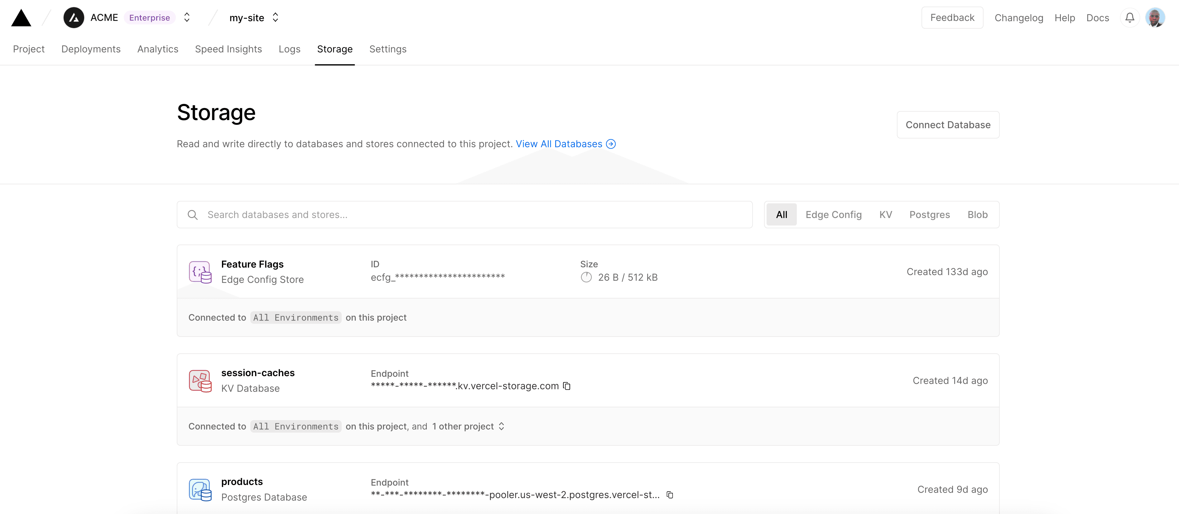 Each Vercel project has a separate dashboard to configure settings, view deployments, and more.