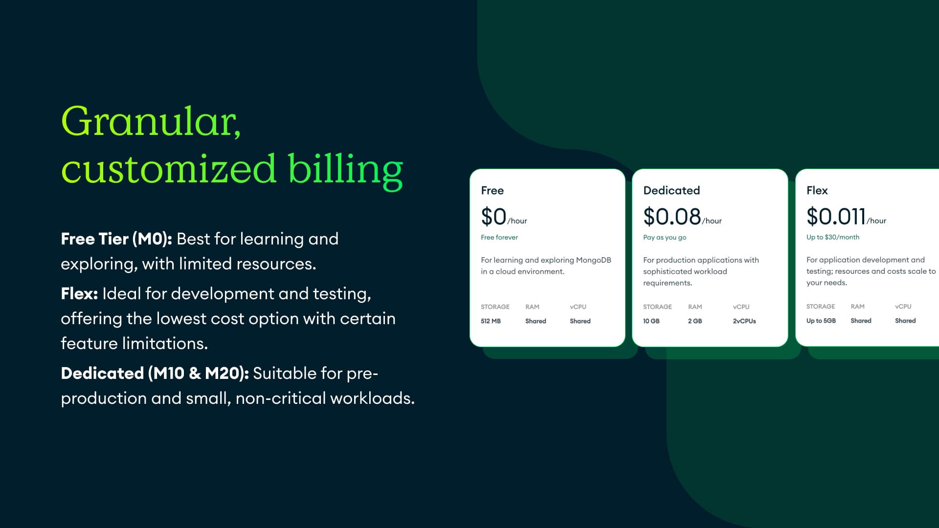 Choose from free, dedicated, and flexible provisioning, with options for every use case. MongoDB Atlas is the most effective way to deploy MongoDB.