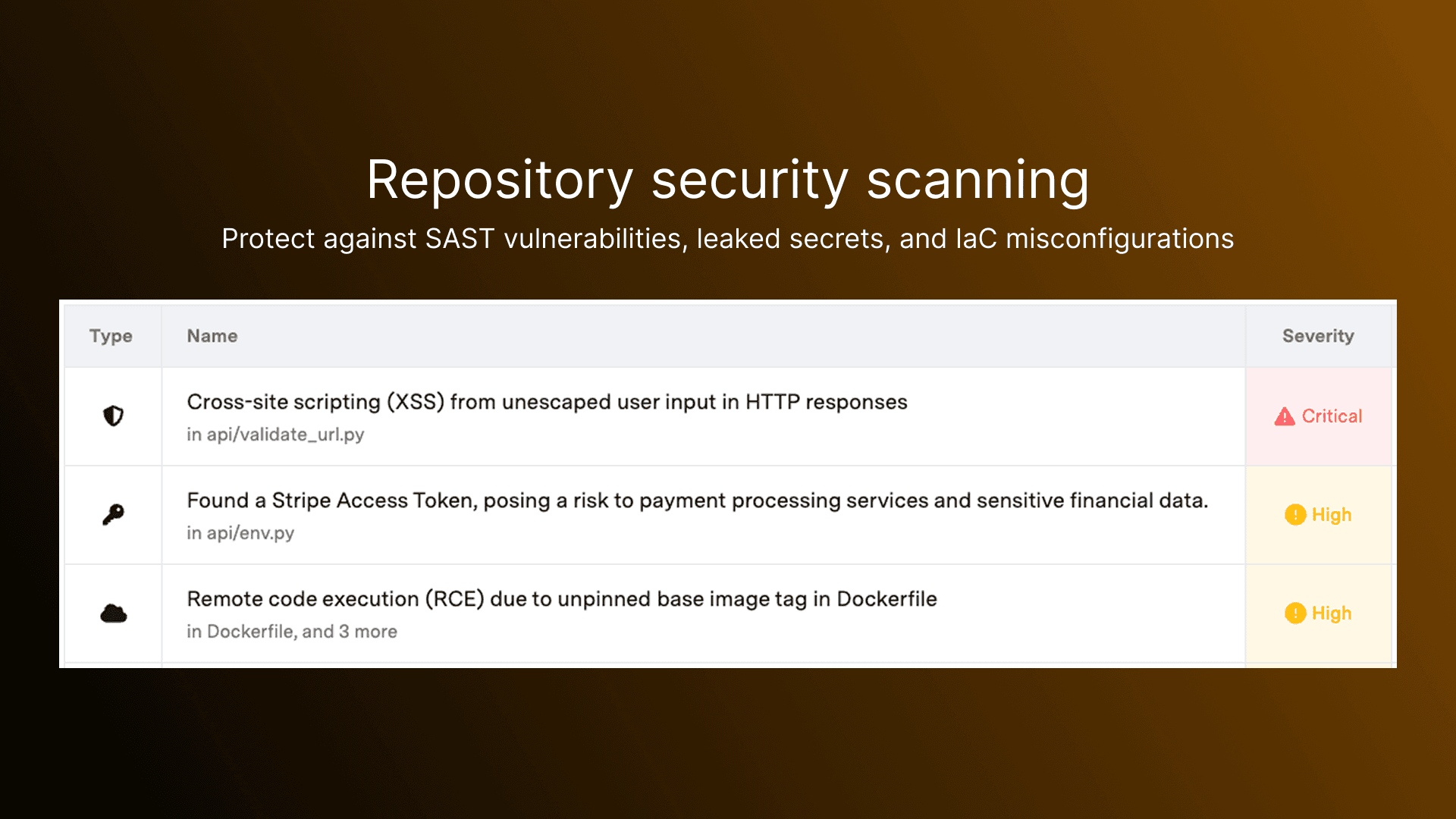 Connect Vercel, Sourcery, and GitHub to trigger a review on every new pull request. Sourcery checks each change for correctness, security, performance, design, and maintainability. It also runs continuous security scans so you can spot risks before they ship.